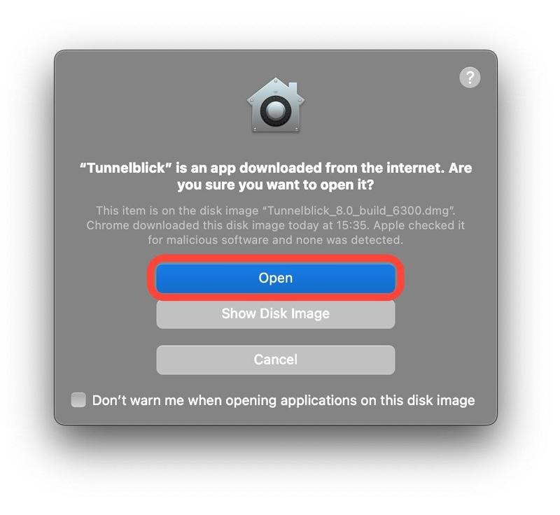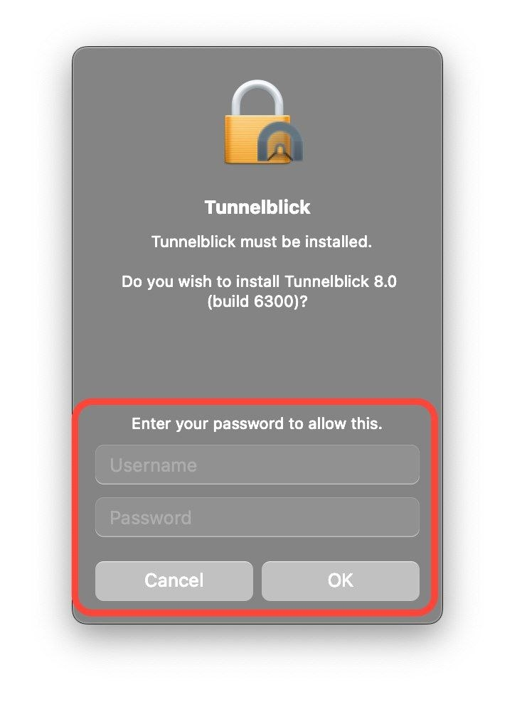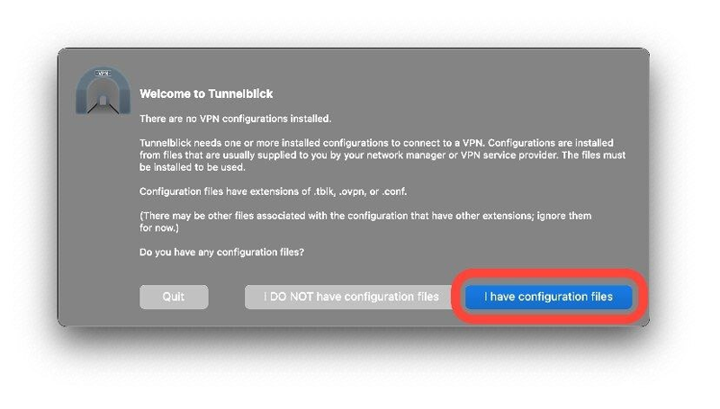 - 9. Find the Tunnelblick icon in your menu bar (top right), click on it and select VPN Details.