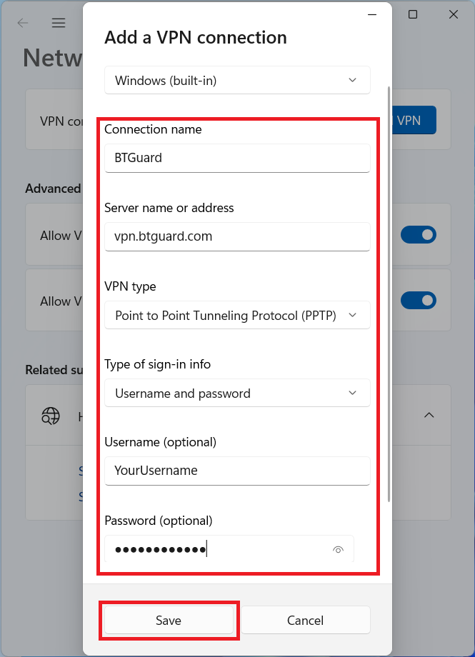 Both username and password are case sensitive. Make sure not to add/forget Capital Letters. - 5. Hit Save.