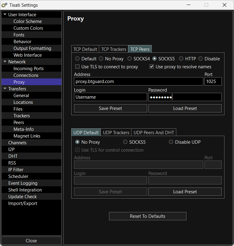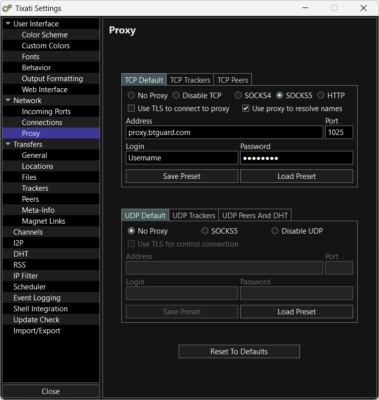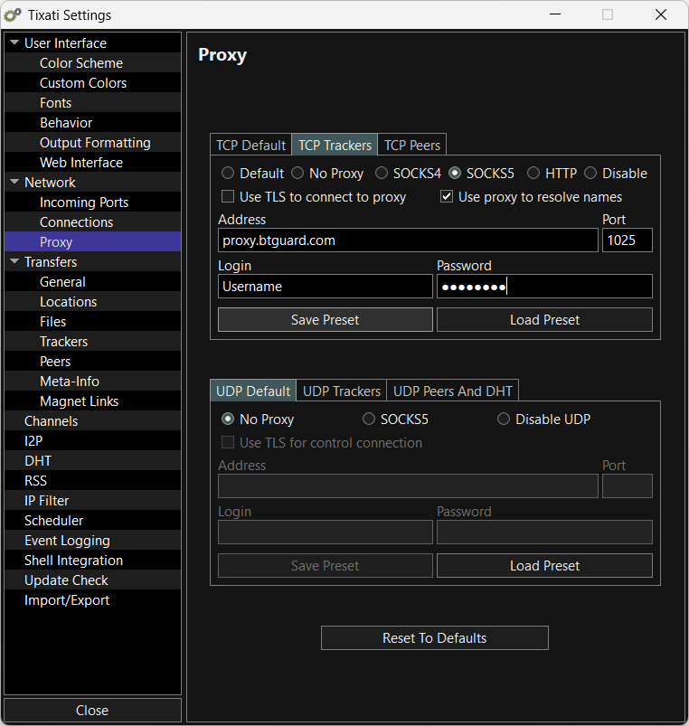 Both username and password are case sensitive. Make sure not to add/forget Capital Letters. - 8. Click on Save Preset