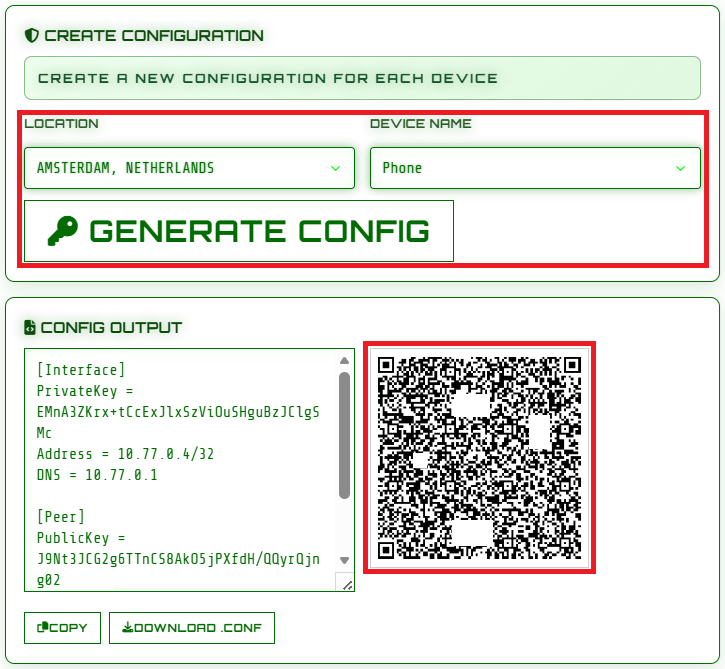 - 2. Go to the wireguard config generator from another device if possible. (not necessary but slightly faster)