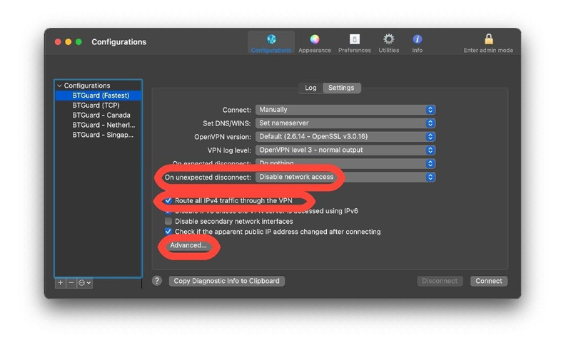If BTGuard (Fastest) doesn't work, please try BTGuard (TCP). All Config files use the UDP protocol except BTGuard (TCP).
